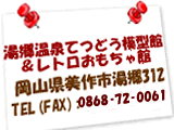 Copyright (c) 2008, 湯郷温泉てつどう模型館&レトロおもちゃ館 All Rights Reserved.